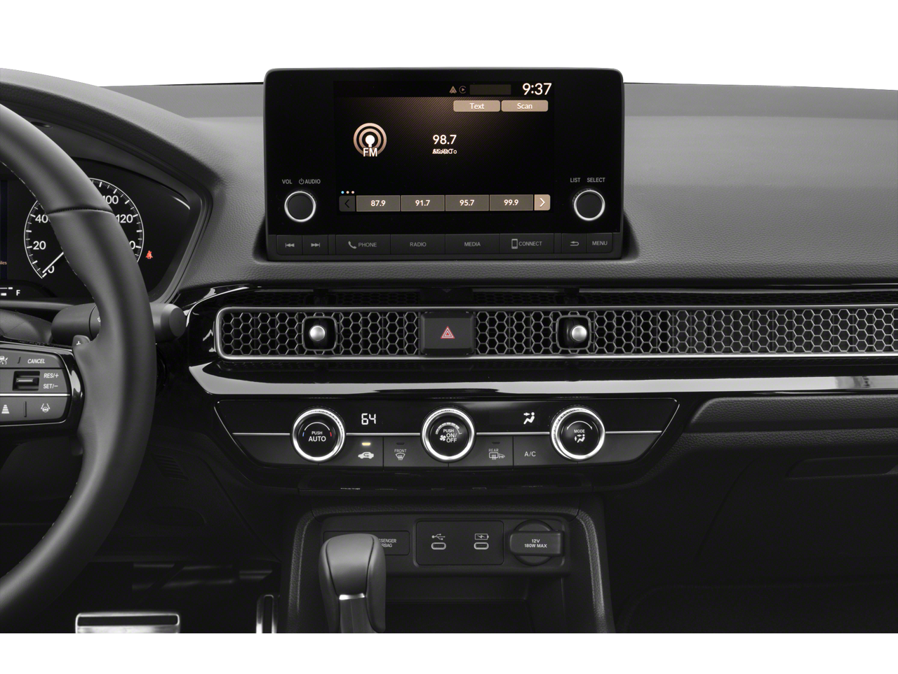 2025 Honda Civic Sport, Adaptive Cruise Control: Adaptive Cruise Control (ACC) with Low-Speed Follow, AM/FM radio, Apple CarPlay/Android Auto, Auto High-beam Headlights, Automatic temperature control, Blind Spot Information (BSI) System warning, Emergency communication system: HondaLink, Exterior Parking Camera Rear, Fully automatic headlights, Radio data system, Radio: 180-Watt Audio System, Remote keyless entry, Steering wheel mounted audio controls, Telescoping steering wheel, Tilt steering wheel.